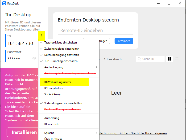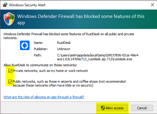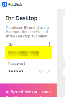 Entpacken und starten von Rustdesk.exe
